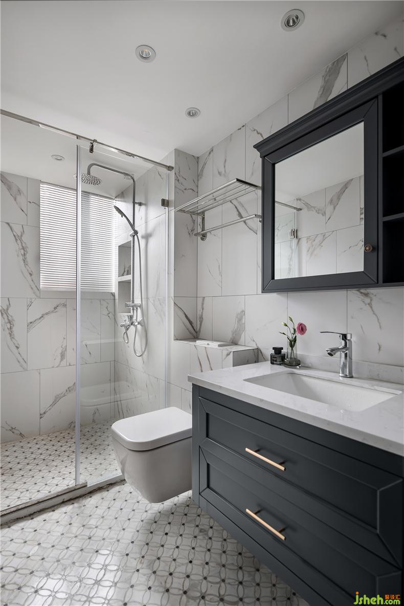 小花磚搭配石紋墻磚,小空間也能有屬于自己的層次感。