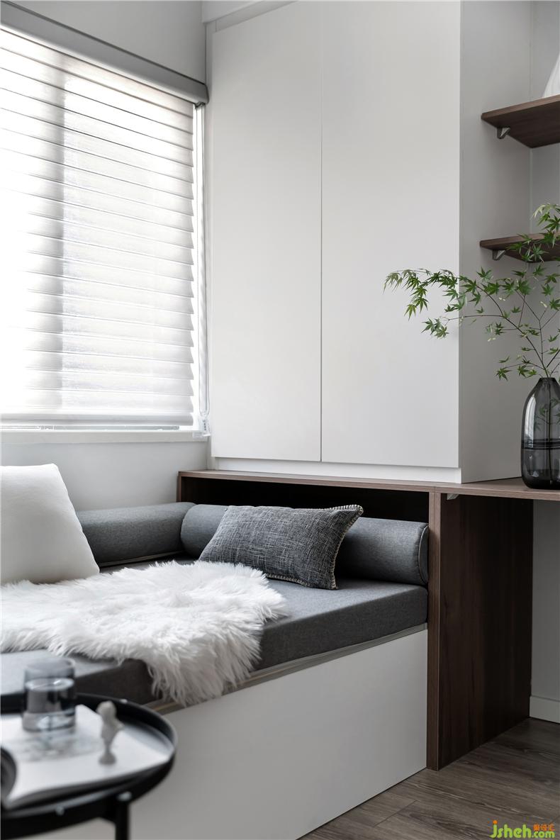 靠窗處現(xiàn)場(chǎng)制作了小型榻榻米,可以成為辦公疲憊時(shí)小憩的場(chǎng)所,另外打造了柜體,可以分擔(dān)全房的儲(chǔ)物壓力。