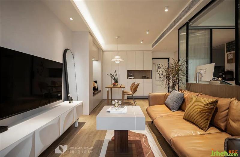 我們打通廚房、陽臺(tái),打造開放式大廚房;將次臥改為書房兼客臥,用玻璃門代替墻體,獲取充足采光;L型儲(chǔ)物柜聯(lián)動(dòng)玄關(guān)、客餐廳,解決收納難題……實(shí)現(xiàn)60㎡小戶型顏值、功能雙逆襲!