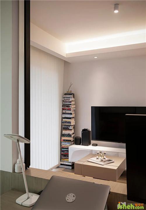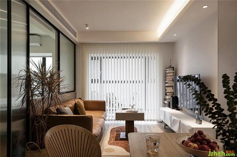 豎型百葉簾分割出客廳、陽臺(tái)的界限,卻不妨礙光線的游走,視覺更寬敞、明亮。