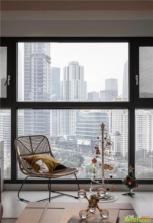 大幅落地玻璃窗引入自然光線,藤編躺椅休閑感十足,寒冷的冬日,沐浴著輕暖的陽光,深圳公寓裝修設(shè)計(jì)愜意至極。