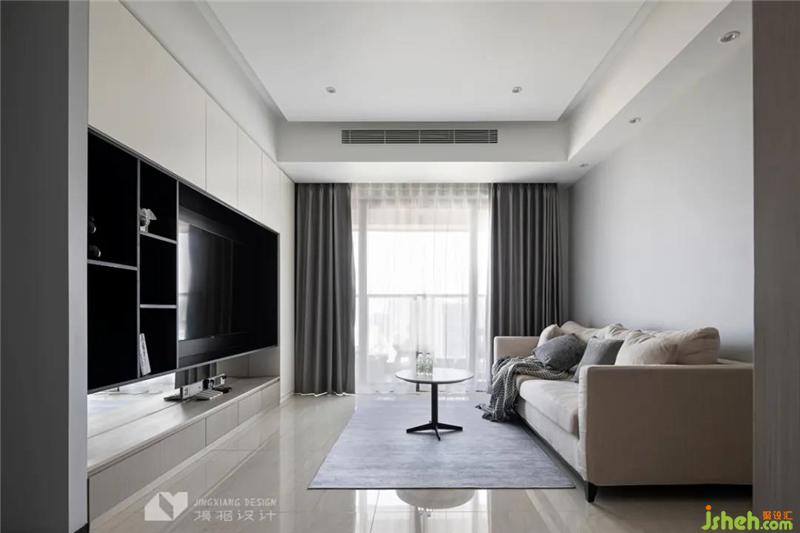 Pure floor tiles extend the line of sight. Morandi color fabric sofa makes the visual focus transition naturally. French windows give you a broad vision. In the afternoon, you can lean on the sofa and see the prosperity of the city through the window in the sunshine.