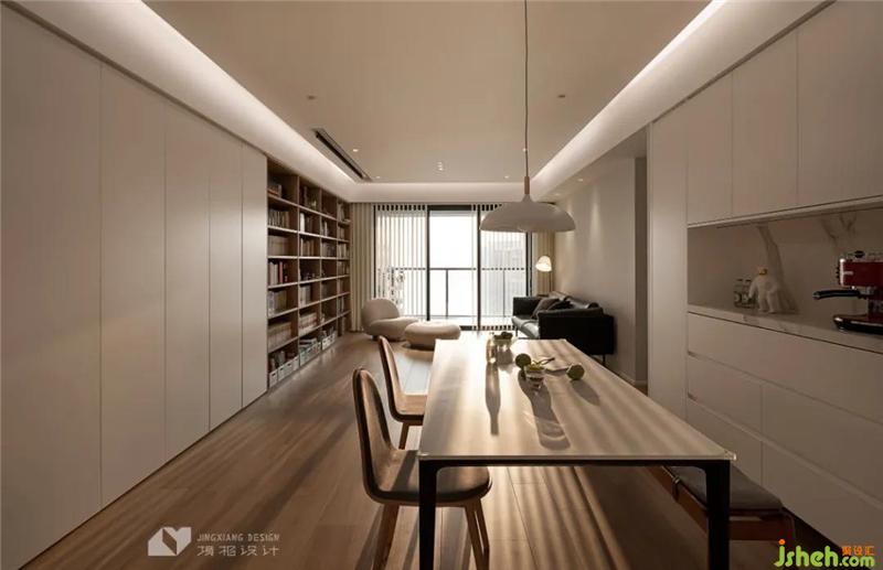 LDK設(shè)計(jì),陽(yáng)光與空氣在空間自由流轉(zhuǎn),空間更加開闊、通透。從玄關(guān)到客廳,依墻打造整排柜體,增加收納空間,也讓客餐廳連通性更強(qiáng)。好的家庭氛圍就是,你在煎炒烹炸,我在看書喝茶,偶爾談話,任時(shí)光荏苒。