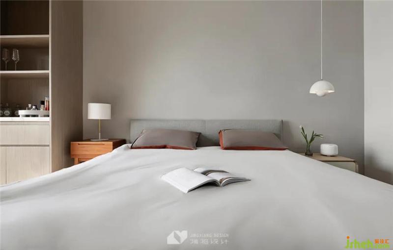 The master bedroom uses white and log color as the main color ,and uses high-grade grey bedding and green plants to reconcile the white emptiness, creating a natural and transparent sleeping space.