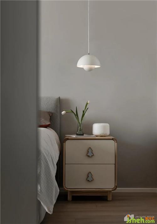 Table lamp and chandelier are installed on both sides of the head of the bed to break through the stereotype of bedroom layout and form the beauty of asymmetry. Both of them have their own functions, which can not only illuminate, but also set off the atmosphere.
