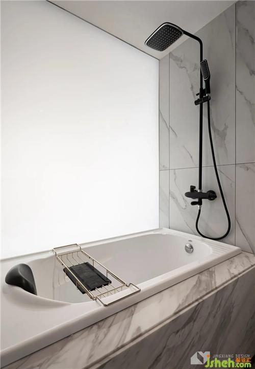 主衛(wèi)U字型布局,實現(xiàn)空間利用最大化,一側布置干區(qū),一側安裝浴盆,一天的煩惱與疲累在熱氣蒸騰中盡可拋卻。