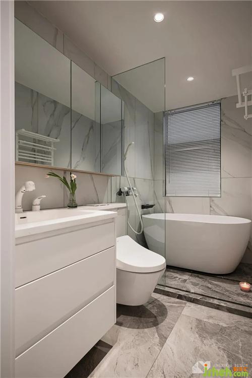 The U-shaped layout of the main bathroom maximizes the utilization of space. The dry area is arranged on one side, and the bathtub is installed on the other side. The worries and tiredness of the day can be given up in the bath room.