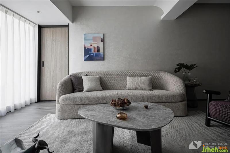 Based on low-saturated gray and white, it creates a casual and comfortable space atmosphere and quietly relaxes the mood. The regular stone is embedded in the smart wooden grille, which combines rigidity and softness, enriching the local spatial connotation.