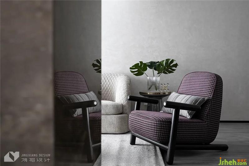 低矮家具,以圍合姿態(tài)迎合弧形頂面,形成和諧互動。紫羅蘭單人沙發(fā)椅,獨有的優(yōu)雅、浪漫風情,引領視覺焦點,烘托出高級的空間氣質(zhì)。