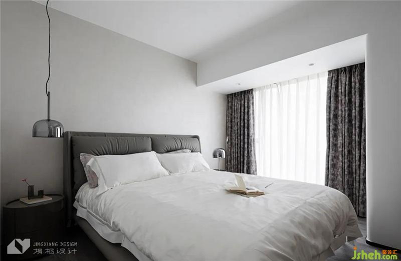 主臥用中性之白,調(diào)和冷感的高級(jí)灰,打造出一個(gè)純凈、通透的空間,在靜謐的氛圍里,入眠、閱讀,都可尋得舒適姿態(tài)。