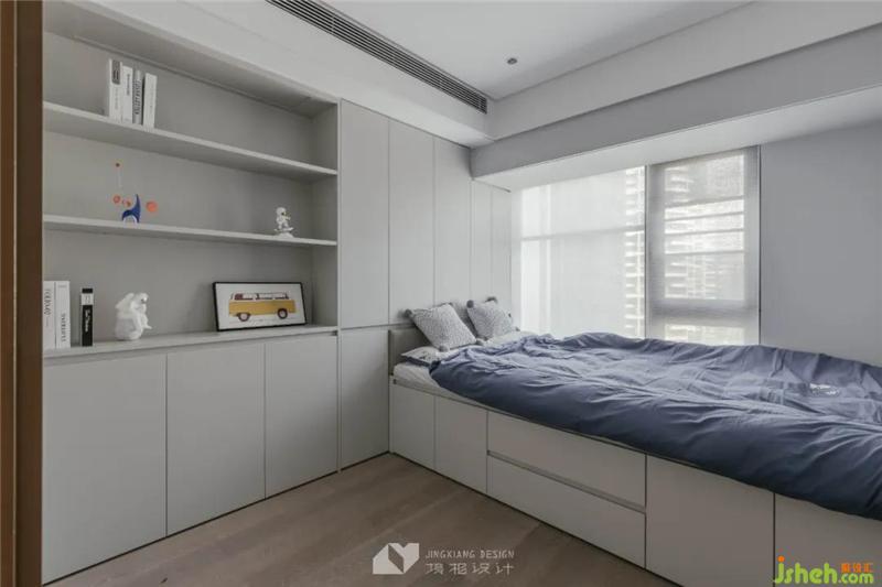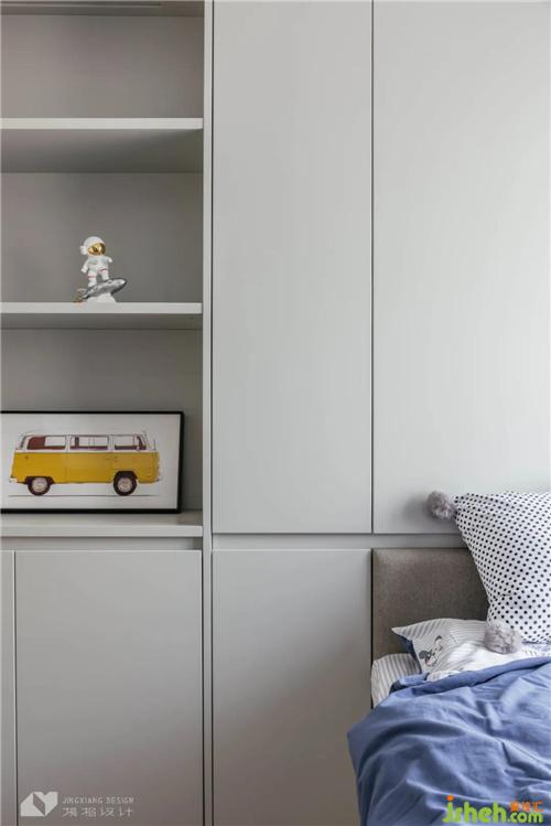 海洋系藍(lán),為灰度空間注入活力,陳設(shè)簡(jiǎn)約不失童趣,完美契合居者身份。榻榻米床暗藏儲(chǔ)物空間,將收納隱于無(wú)形。