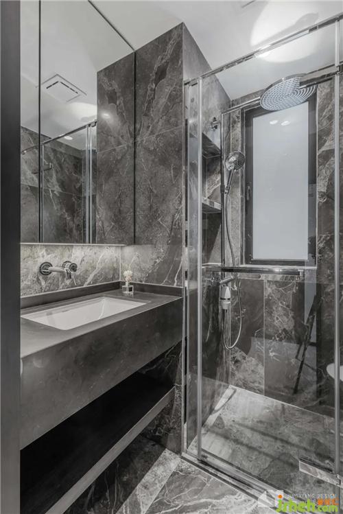 We push the washstand in the bathroom according to the wall, borrow part of the space of the second bedroom, and use the transparent glass sliding door to divide the washing and shower area, so as to avoid the space depression.