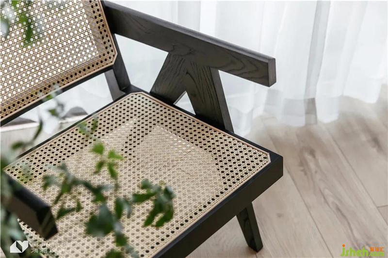 The combination of white marble and warm logs creates a light and flexible small table. A green plant is implanted into the living room, and the vitality of the home is displayed incisively and vividly. Chandigarh chair was born in the early 1920s and produced by Corbusier. Its unique cultural connotation is combined with the material and texture of rattan wood to make the spirit of space fuller and richer.