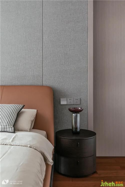 床頭兩側(cè)照明燈具形成非對(duì)稱美感,一燈一景,每一縷暖光都是觸發(fā)情感的開關(guān)。