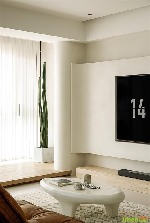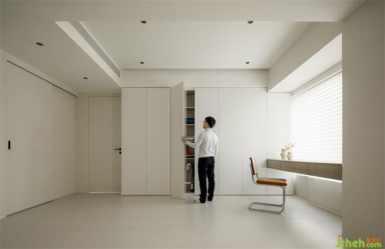 境相設(shè)計(jì)師在客廳增設(shè)一整排柜子為將來(lái)可以收納更多的物品,同時(shí)在窗邊安排了書(shū)桌位。