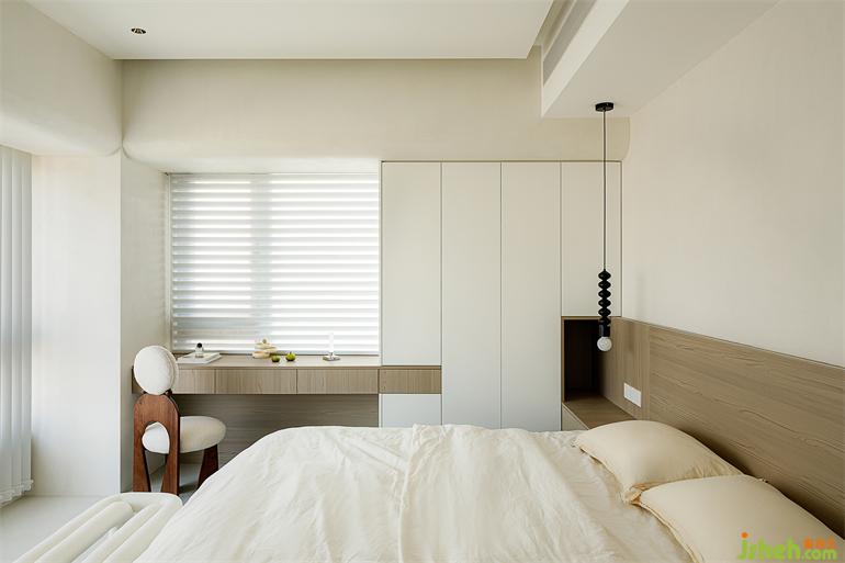 主臥擴(kuò)大了進(jìn)門玄關(guān)并增加衣柜,內(nèi)推了主衛(wèi),境相設(shè)計(jì)再將原直角導(dǎo)圓處理來弱化空間的銳角。
