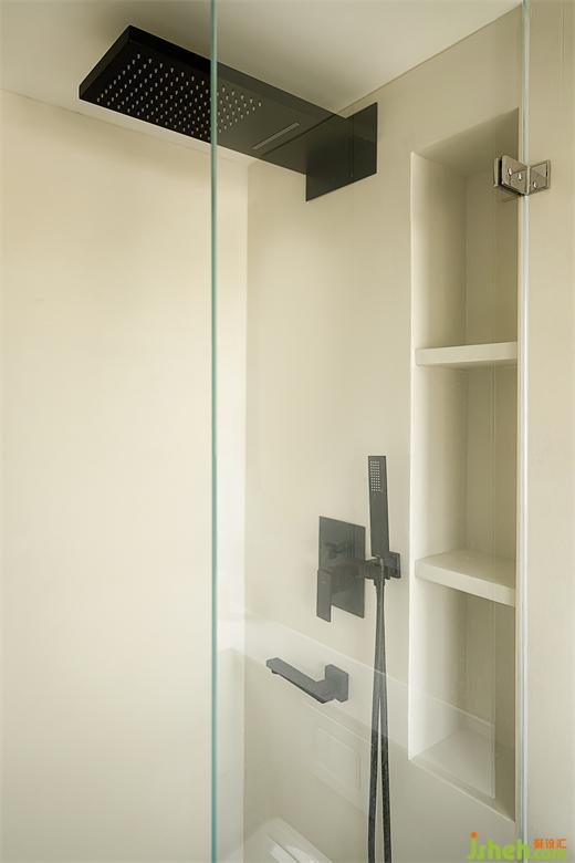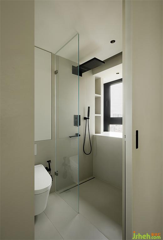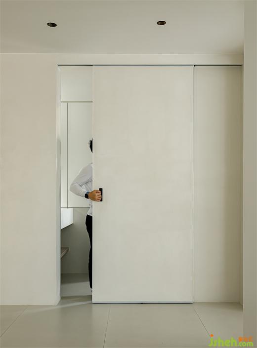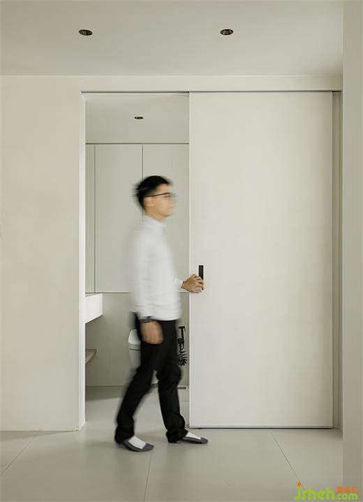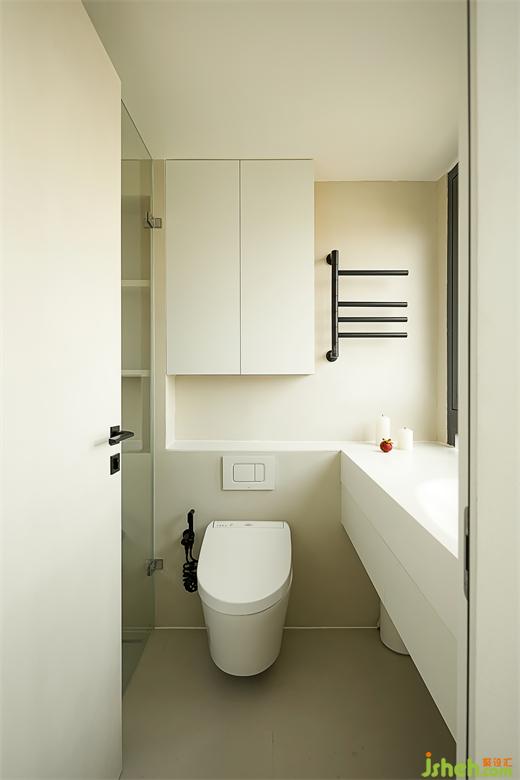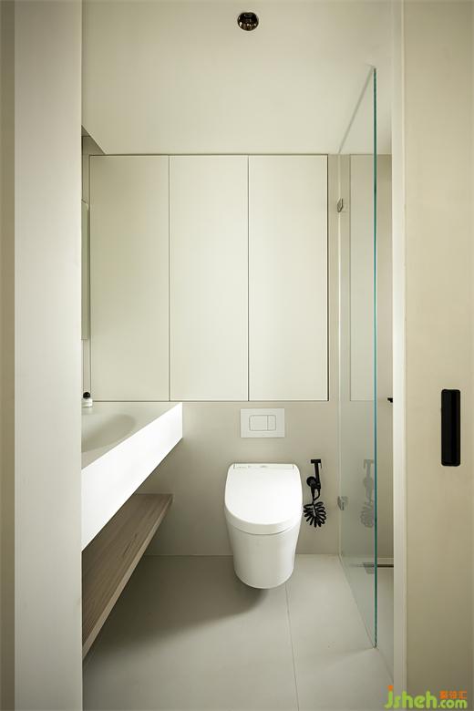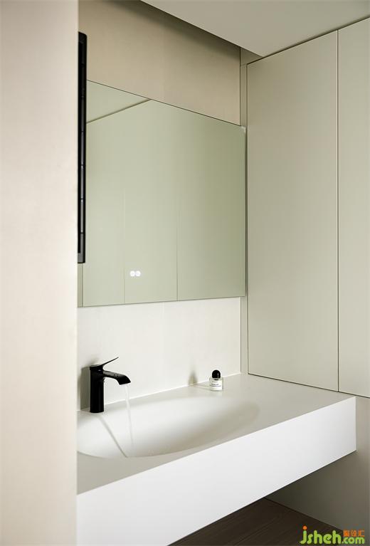 公衛(wèi)改動門的位置和形式,境相設(shè)計為一扇移門為增加浴室柜的長度,移門開合不占用空間,更加靈活便捷。