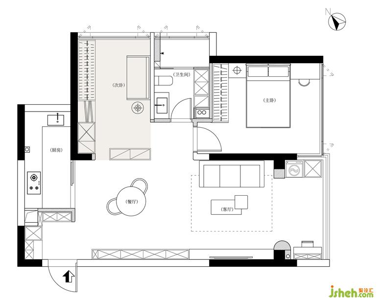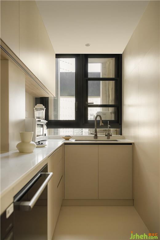廚房:把陽(yáng)臺(tái)納入進(jìn)來(lái)增加廚房使用率,同時(shí)讓餐廳空間更寬敞