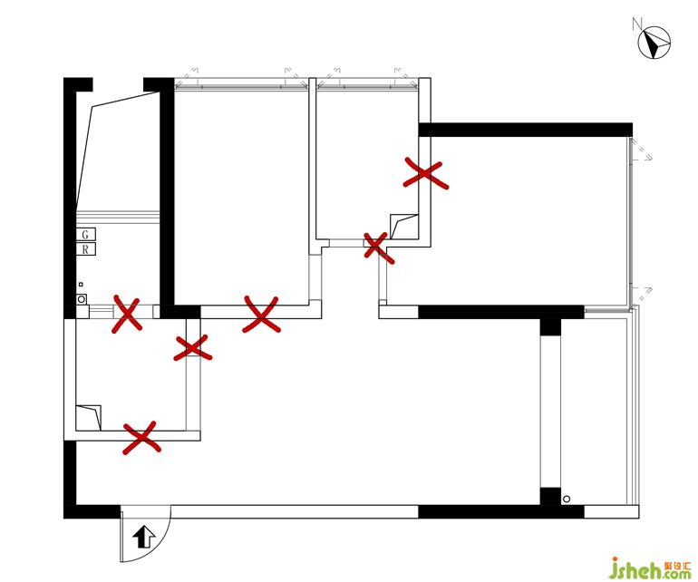 衛(wèi)生間:門(mén)往右移位,增加衛(wèi)生間更多收納柜