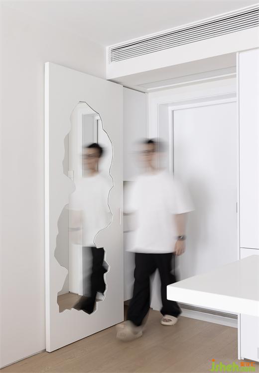 4、主臥設吊軌門,隔出獨立的衣帽間,一并實現(xiàn)空間的內(nèi)外聯(lián)動,構(gòu)建趣味的環(huán)形動線。