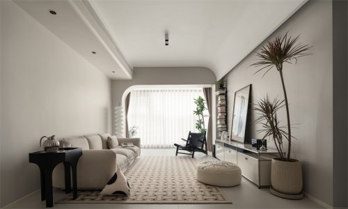 客廳以極簡純白為導向,回饋屋主對干凈純粹家宅的向往,白色藝術漆由墻及地,配合隱形踢腳線的處理,空間被包裹成純凈無暇的國度,而小家所需要的溫馨感,家裝設計則順由木色地板,延展至家的深處。#客廳#藝術漆#隱形踢腳線