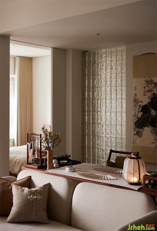 次臥:兩個次臥打通,合并為多功能室,作為辦公、古箏、臨時休息區(qū)。大開間玻璃移門,視覺通透,拆除客廳墻體內退,房門打開后,客廳與次臥視覺得到最大限度延伸。
