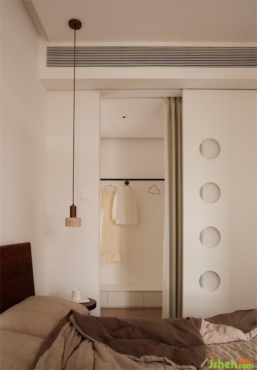 主臥:主臥房門一門兩用,衛(wèi)生間改為掛衣區(qū)與梳妝臺,房門打開后,儼然變成了一個大套間,餐廚區(qū)客廳,主臥,次臥,流動性動線