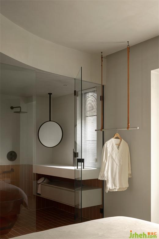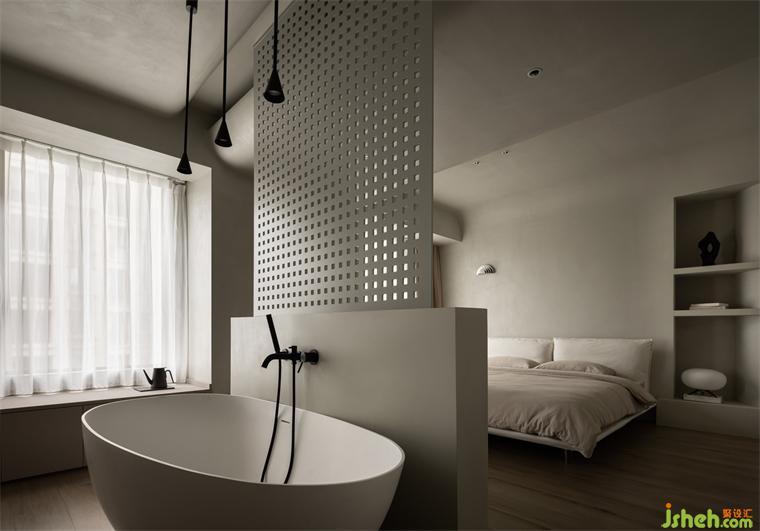 將臥室與衛(wèi)生間結合的空間規(guī)避了冗余的表現(xiàn)手法,用純凈的色調鋪陳出安靜的情緒,獨特套房設計以更舒適自在的態(tài)度跨越生活的重復。