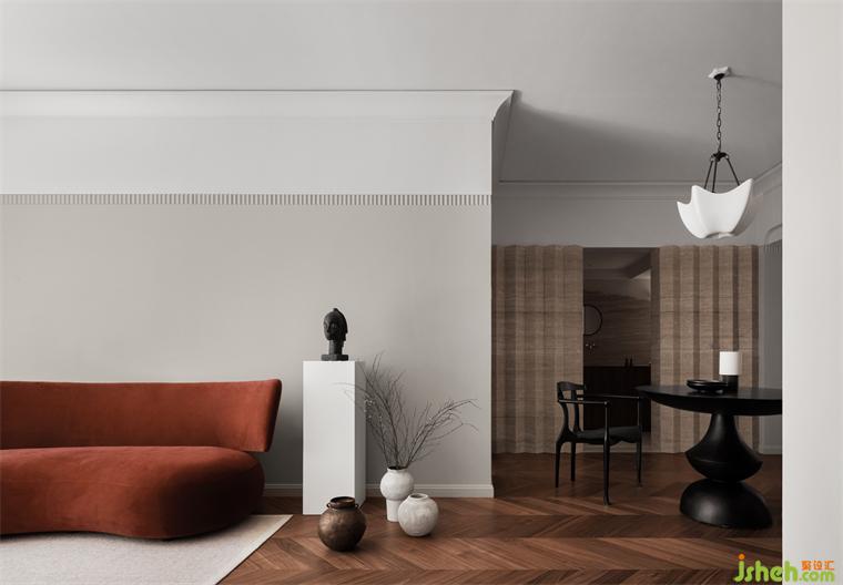 色彩在現(xiàn)代東方私宅設(shè)計(jì)中起著至關(guān)重要的作用,在這個(gè)空間中中性色提供了平靜放松的氛圍。“悠然中找尋自我的狀態(tài),空間被賦予開放、優(yōu)雅、寧靜的氣質(zhì),不同紋理與風(fēng)格的相互碰撞,定義出回應(yīng)屋主獨(dú)特藝術(shù)訴求的空間?!?