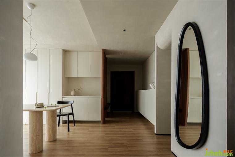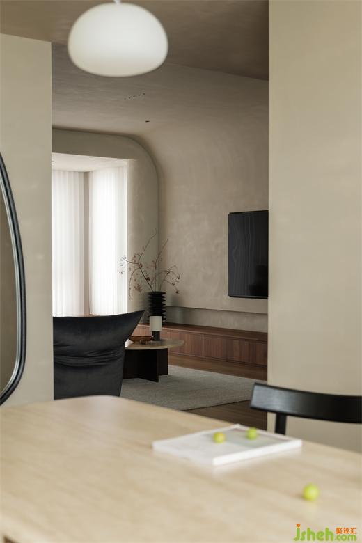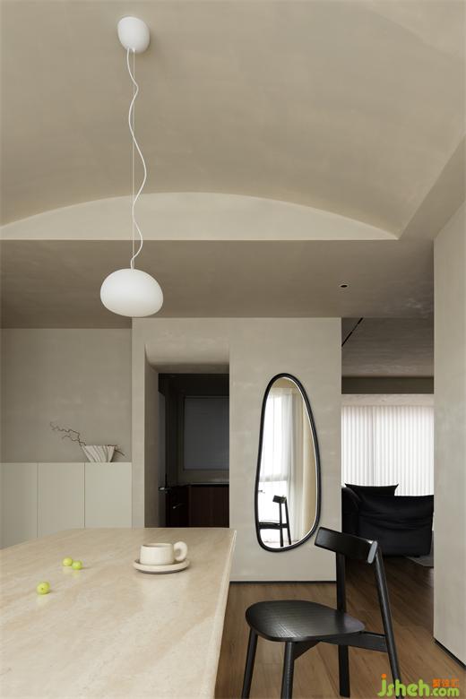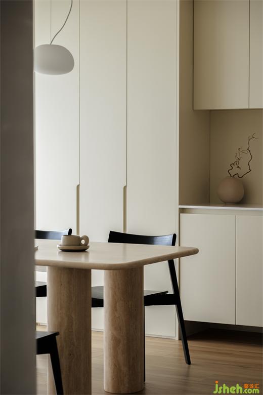 餐廳擁有更多的活動(dòng)空間,柜體中儲(chǔ)存了精美的瓷器器皿,三兩好友家中小聚,煮一杯咖啡、看一本閑書(shū),藏匿于日常中的美好便在此體現(xiàn)。錯(cuò)落有致的動(dòng)線令空間充滿節(jié)奏感,一步一景,裝修設(shè)計(jì)從不同角度和不同區(qū)域的感知,結(jié)構(gòu)交錯(cuò)進(jìn)行。