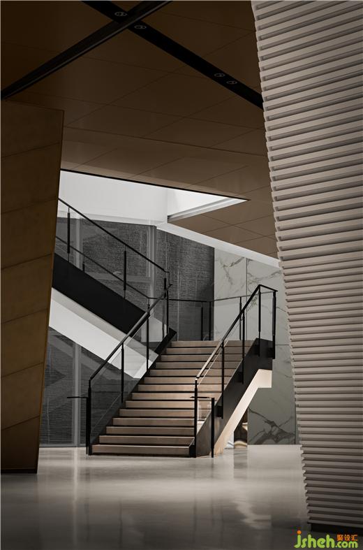 城市、山脈、星空、麥田以抽象形式和空間相遇,城市會(huì)展中心設(shè)計(jì)的“幻術(shù)”賦予此時(shí)此地,體驗(yàn)感超越了敘述和象征意義——體塊劈砍、星圖照路,電子海水變幻著色彩在天幕盡頭起伏翻涌......自然、城市和人的歷史裹挾而來(lái),越過(guò)羅森橋在此相交。