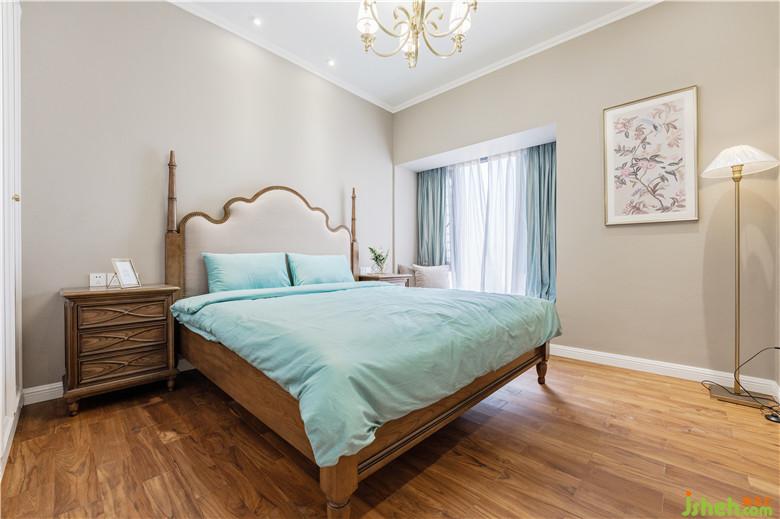 與兒童房、主人房的跳色亮色相比較,長輩房的主打色與墻體色更為淡雅一點,選擇了卡其色,長輩房需要打造安眠環(huán)境。配合床頭柜與床復古田園感。定制的衣柜也是偏素雅。