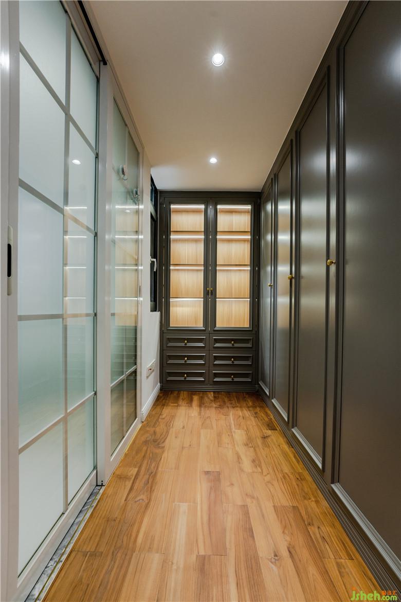 推拉門設計節(jié)省空間不止,還充當更好的阻隔。衣帽間原本格局結構是衛(wèi)生間,把衛(wèi)生間改為衣帽間,對于三口之家,減少衛(wèi)生間的個數(shù),騰個空間做衣帽間更實用呢!中灰色的烤漆衣柜,上面帶有特意制作成帶有線條的柜門板,配上金色的柜門把手非常精致!