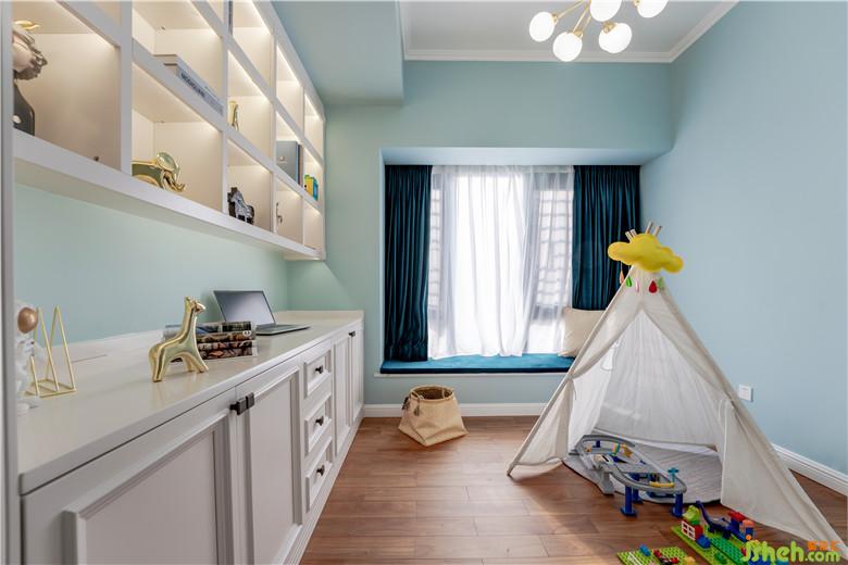 法式不一定是滿墻繁復的線條,簡單的色彩碰撞與搭配,恰到好處的書柜書桌設計,會令你頓然覺得“剛剛好”。什么顏色最適合學習與玩耍?我給的答案是“剛剛好淺藍色”。
