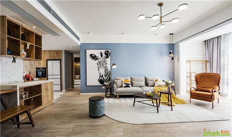 背景墻這幅掛畫簡直就是神來之筆,一直關注有我們的小伙伴應該知道,這就是Johnny哥會客茶室的背景畫!這只斑馬活躍了這個客廳,簡直不要太百搭!在軟裝上的選擇,我們的軟裝部周周也動了不少小心思哦,像弧形地毯以及三角茶幾,花紋窗紗和木紋電視柜,這些軟裝搭配都能讓空間更出彩!