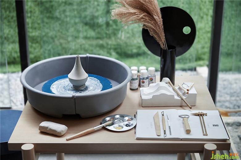 陽臺(tái)一隅,設(shè)置了簡單的陶藝工作臺(tái),生活與愛好在此間,得以隨意而自由地切換。通過細(xì)節(jié)的打磨,展示出居者對理想生活的美好期待。