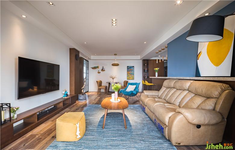 而北邊房間作為臥室,這樣也能把動(dòng)區(qū)和靜區(qū)分開。特別通過室內(nèi)設(shè)計(jì)師特別處理,在書房過道處做了二道通透的隔斷,這樣不管從廳里哪個(gè)角度看過去,或者從書房看向外部空間,視野變得通透,開闊,互動(dòng)性也會(huì)更強(qiáng),同時(shí)也能陽光引入客廳來。