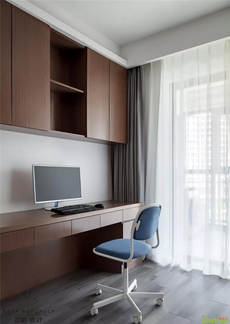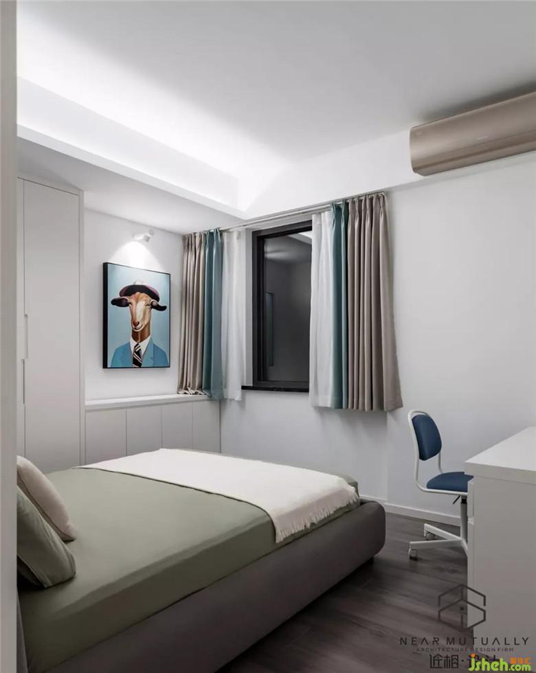 考慮到只需要兩個(gè)臥室,客人也是偶爾來(lái)住,使從客廳里看書(shū)房時(shí)空間更干凈大些,于是在柜子里設(shè)計(jì)了一個(gè)拉升床。美觀又實(shí)用升了使用空間。