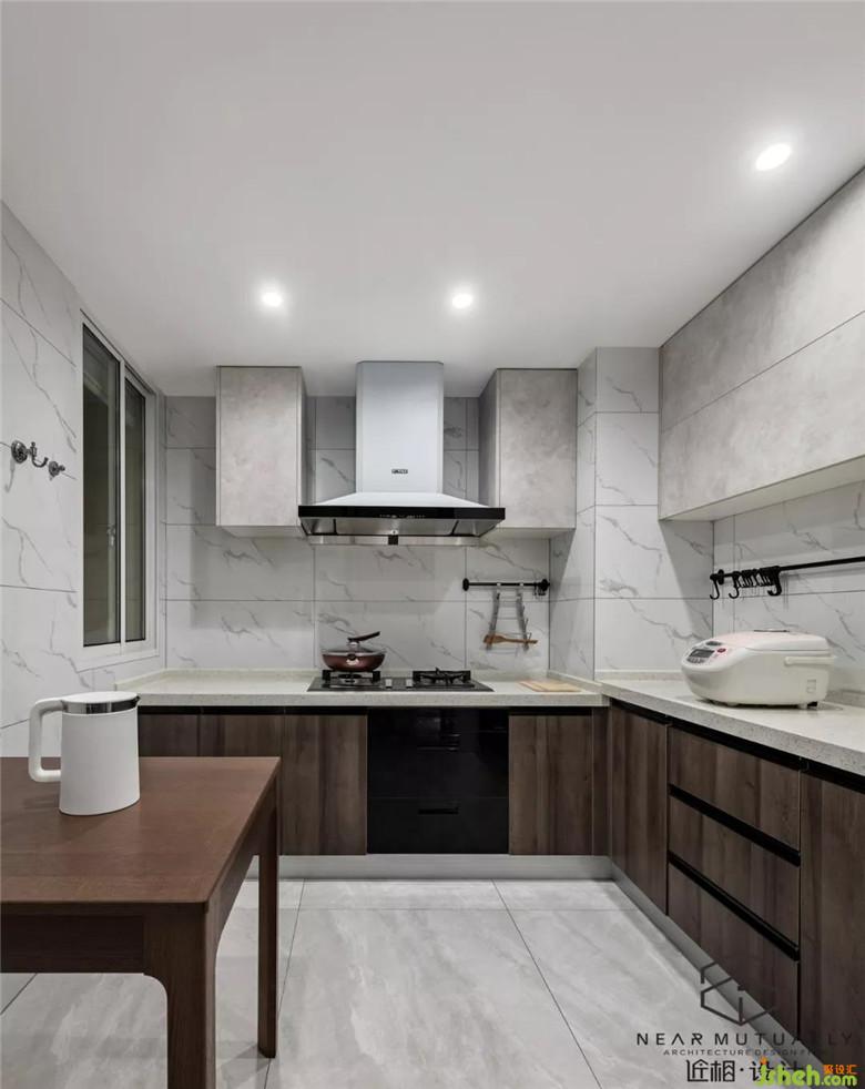 并且增加活動早餐臺,廚房門整個擴大換成移門,引入客廳光線,讓廚房做飯變得更加透亮。