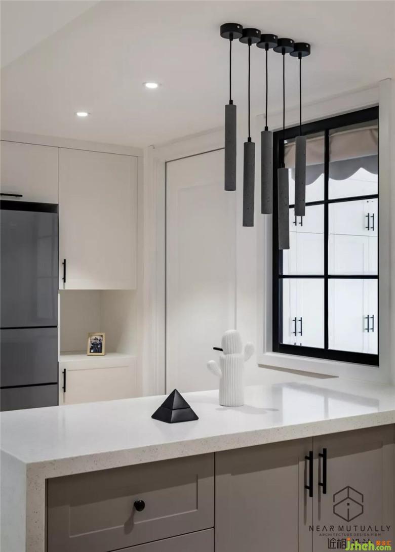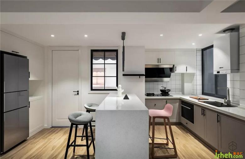 裝修公司將廚房改成開放式廚房,增加島臺餐臺,使餐廳廚房一體化。