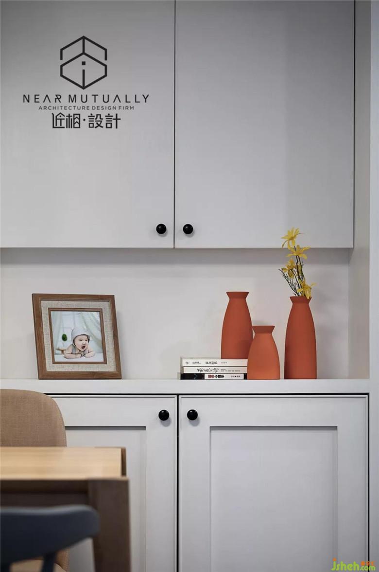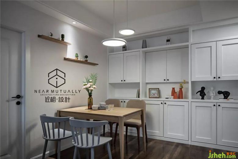 ▲更具餐廳的改造后的結(jié)構(gòu),做了一個圍合式的滿排展示柜,增加儲物量,同時可以在柜子里放滿書,零食,瓶瓶罐罐等物品。餐桌裝修公司選擇了可變性餐桌,不用擔心人多的時候用餐了。