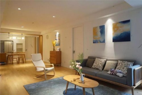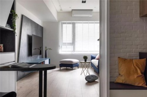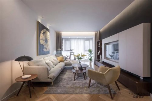 材質(zhì)裝修公司以黑白灰加木色為主,盡量簡潔構(gòu)圖減少視覺負(fù)擔(dān),沙發(fā)抱枕為空間增加了一抹亮色,作為空間的點(diǎn)綴
