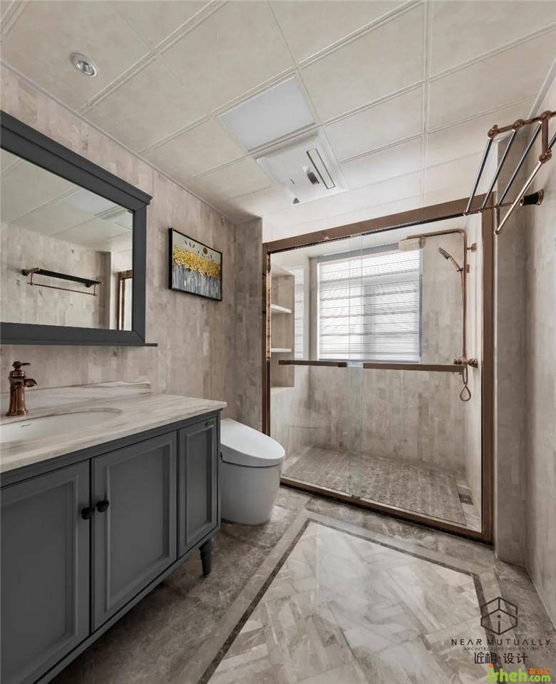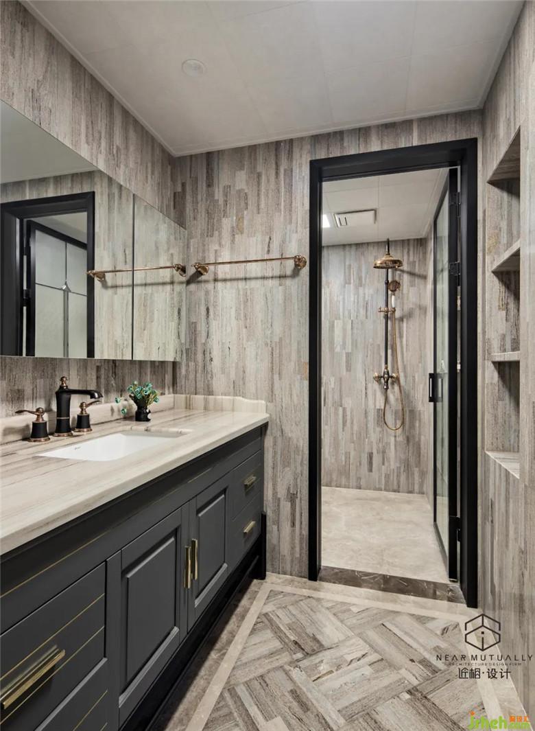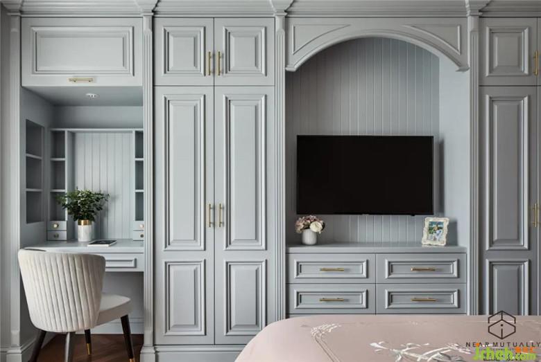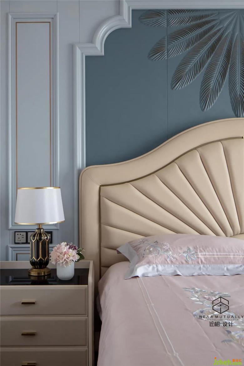 臥室,休憩之所,釋放靈魂的束縛。裝修公司用整體淺藍(lán)白的搭配簡(jiǎn)約舒適,陽(yáng)光穿過(guò)紗簾讓室內(nèi)光線充足,僅以局部金色的輕奢元素提升品質(zhì)感,再輔以冷靜的藍(lán)色安撫躁動(dòng)的陽(yáng)光。