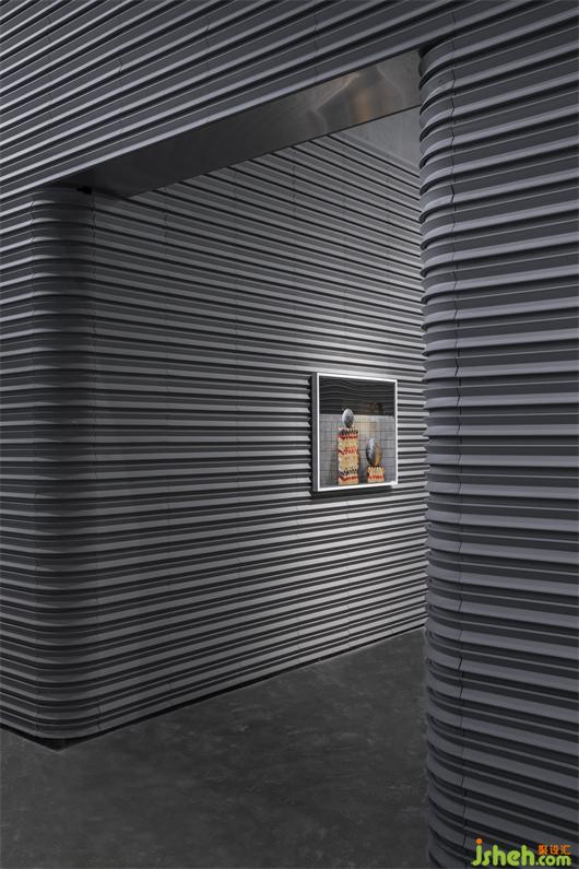 美術(shù)館設(shè)計(jì)以“如何將藝術(shù)品懸掛在墻上”這一最基本的問(wèn)題為出發(fā)點(diǎn),TEMP重新思考了藝術(shù)空間的可能形態(tài)。借助定制的赤陶磚構(gòu)件,金屬材質(zhì)的夾子得以被置入墻壁的縫隙,使繪畫(huà)、裝置、投影儀甚至白色墻壁都可以被懸掛在這個(gè)墻面系統(tǒng)上。這種做法使得X美術(shù)館超越了尋常的白色方盒子空間,為觀者帶來(lái)一種全新的布置和展示藝術(shù)品的方式。