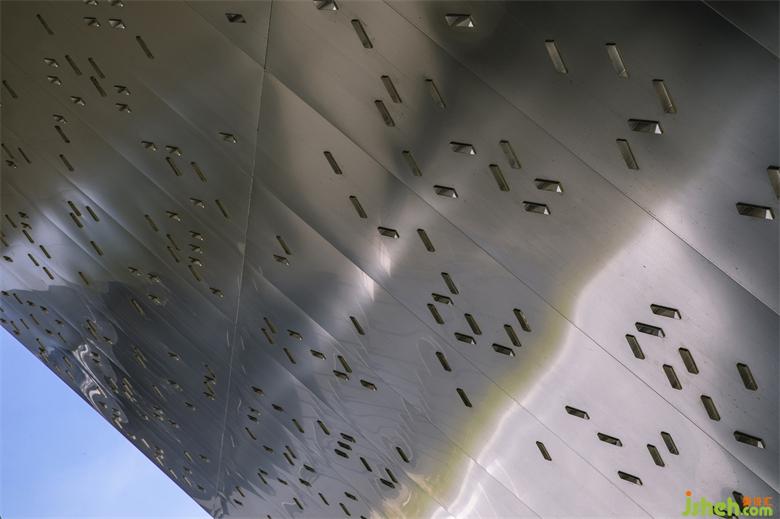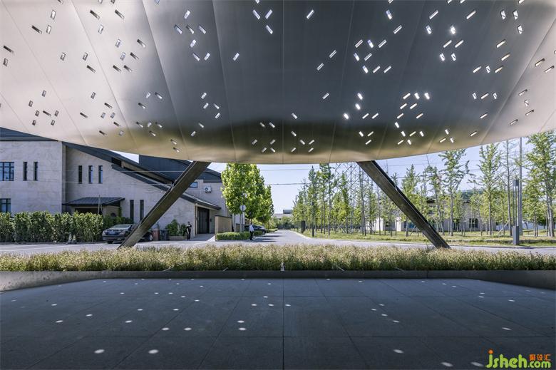X字母也被用作美術(shù)館的主要標(biāo)志,在入口處呈現(xiàn)為兩根相交的H形結(jié)構(gòu)柱,為寬闊的弧形屋頂提供了支撐。美術(shù)館設(shè)計(jì)屋頂表面上的穿孔能夠?yàn)V過光線,在入口空間投下光影。由兩條線組成的“X”圖形還寓意著最基本的交互形式,與美術(shù)館在多學(xué)科方面的努力形成呼應(yīng):除了藝術(shù)家之外,X美術(shù)館還展示來自建筑師、科學(xué)家、工程師、音樂家和設(shè)計(jì)師的作品。