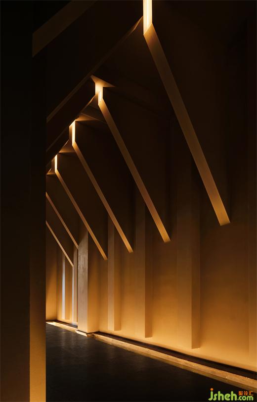 “光影與建筑的穿插、體塊與結(jié)構(gòu)的組合是關(guān)鍵設(shè)計(jì)邏輯。”三角式結(jié)構(gòu)與垂直光線的建立,裝修設(shè)計(jì)向外滋生出嚴(yán)肅的莊嚴(yán)感?!白哌M(jìn)這里時(shí),人們可能最先產(chǎn)生好奇,進(jìn)而是理解與欣賞,這便是隱藏在設(shè)計(jì)語言背后的情感序列?!?