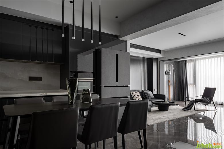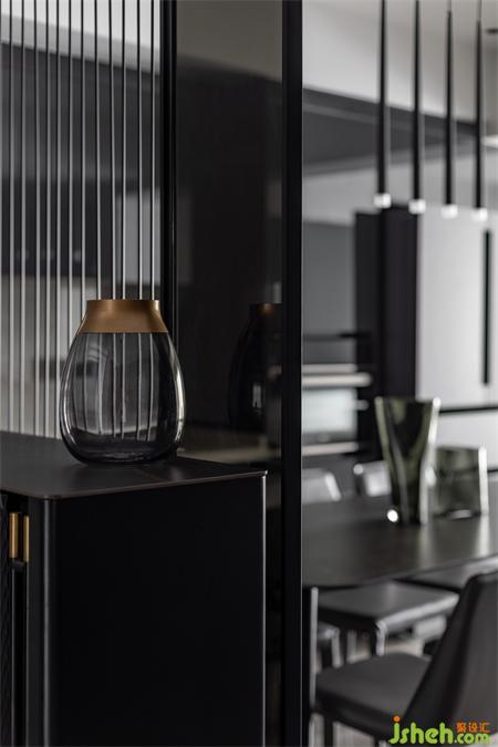 住宅設(shè)計的整體統(tǒng)一性貫穿于整個空間,黑色生態(tài)木是其中最顯性的視覺關(guān)聯(lián)元素,大到空間結(jié)構(gòu),小到材質(zhì)、色彩的呼應(yīng),始終在體現(xiàn)設(shè)計上的貫通和延續(xù),背后的主導(dǎo)是對空間主人生活與氣質(zhì)的契合。