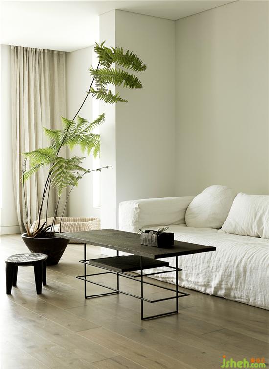 空間中的“白”在于藝術(shù)手法上的留白,在于設(shè)色細(xì)節(jié)上的純白,亦映襯著澄澈生活的底色、璞真不凡的精神。一樁樁、一件件生活器物,在大面積白色調(diào)的掩映下,于忙碌不停的日常中逐漸向自然親近,恍若空間中緩緩流淌過歲月的絮語。私宅設(shè)計洗皺的白色布藝沙發(fā)、結(jié)構(gòu)性的鋼架茶幾、泛古的老木邊桌與矮凳、冉冉綠意的繁葉……空間之中新與舊碰撞、剛與柔交融,于靜默中散著藝術(shù)的張力。天光漫入,點亮遲緩而悠長的夏日午后。