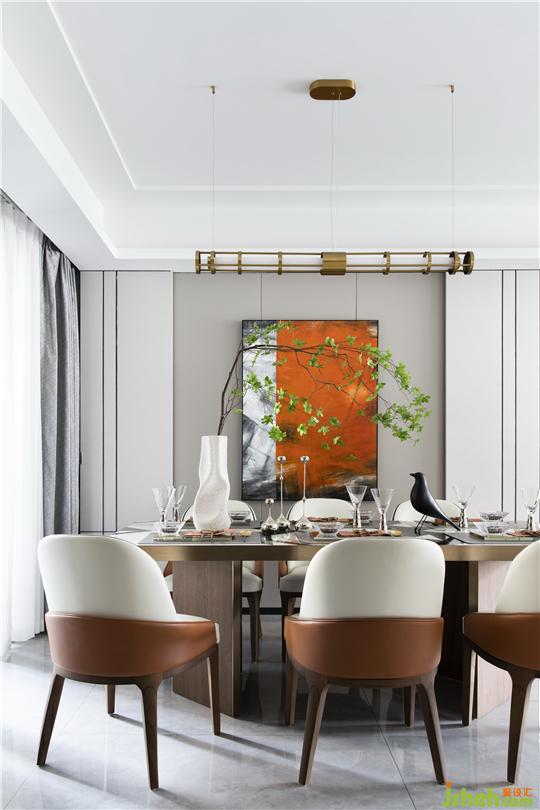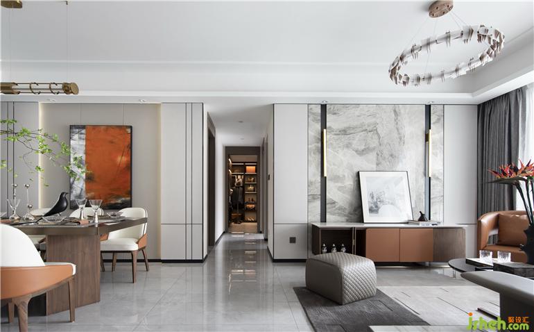 樣板房設計全屋空間以棉麻布藝、皮革、金屬增添空間的層次感,局部配以融于時尚的人文藝術(shù)品,不同材質(zhì)與質(zhì)感的融合,營造出室內(nèi)的高級精品與藝術(shù)感,空間使用橙色系加上高級灰咖,使空間呈現(xiàn)出現(xiàn)代時尚高雅低奢的格調(diào)。
