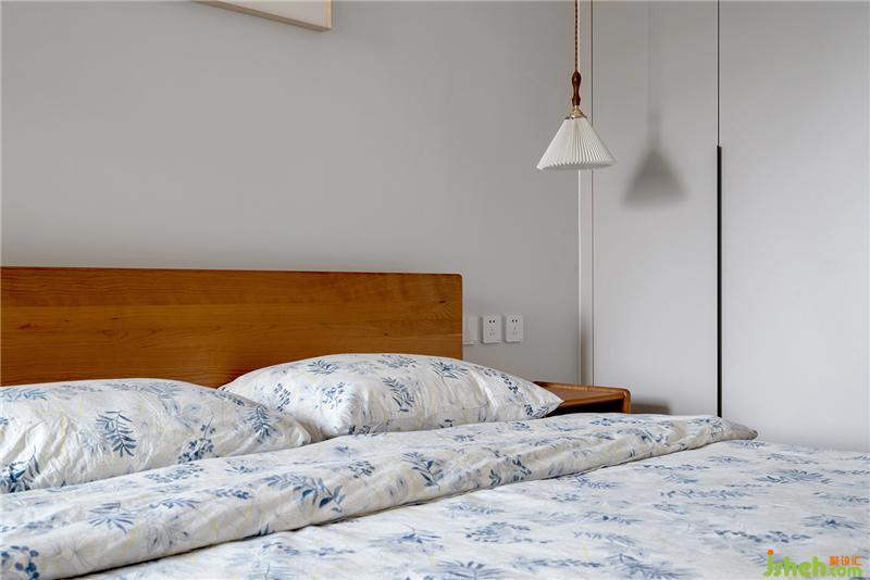 在床頭兩側(cè),分別安裝了壁燈與小吊燈,就是想去追求不對稱的美感。